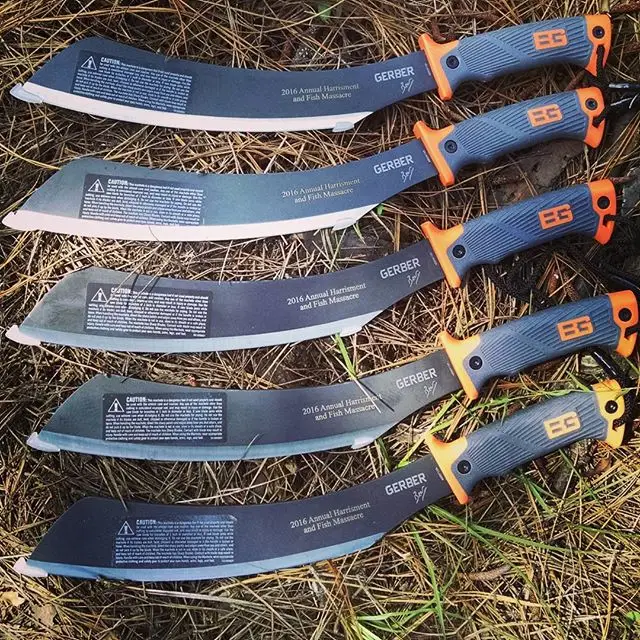 Gerber Parang 31-002289 Survival machete. These have been custom engraved for the 2016 Annual Harrisment and Fish Massacre give away prize. Comes with a nylon sheath.